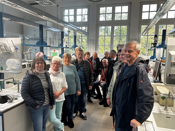 Interessiert haben sie dessen Ausführungen verfolgt und mitgedacht und mitgerechnet und festgestellt, dass nach so langer Zeit grundlegende Kenntnisse noch vorhanden sind. Im Anschluss daran hat Felix Giesa durch verschiedene Labore mit unterschiedlichen Versuchsanlagen des Fachbereiches Angewandte Biowissenschaften und Prozesstechnik geführt.
